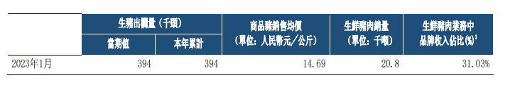 中粮家佳康2月9日在港交所公告称,1月生猪出栏量39.4万吨,商品猪销售均价14.69元/公斤,生鲜猪肉销量2.08万吨。