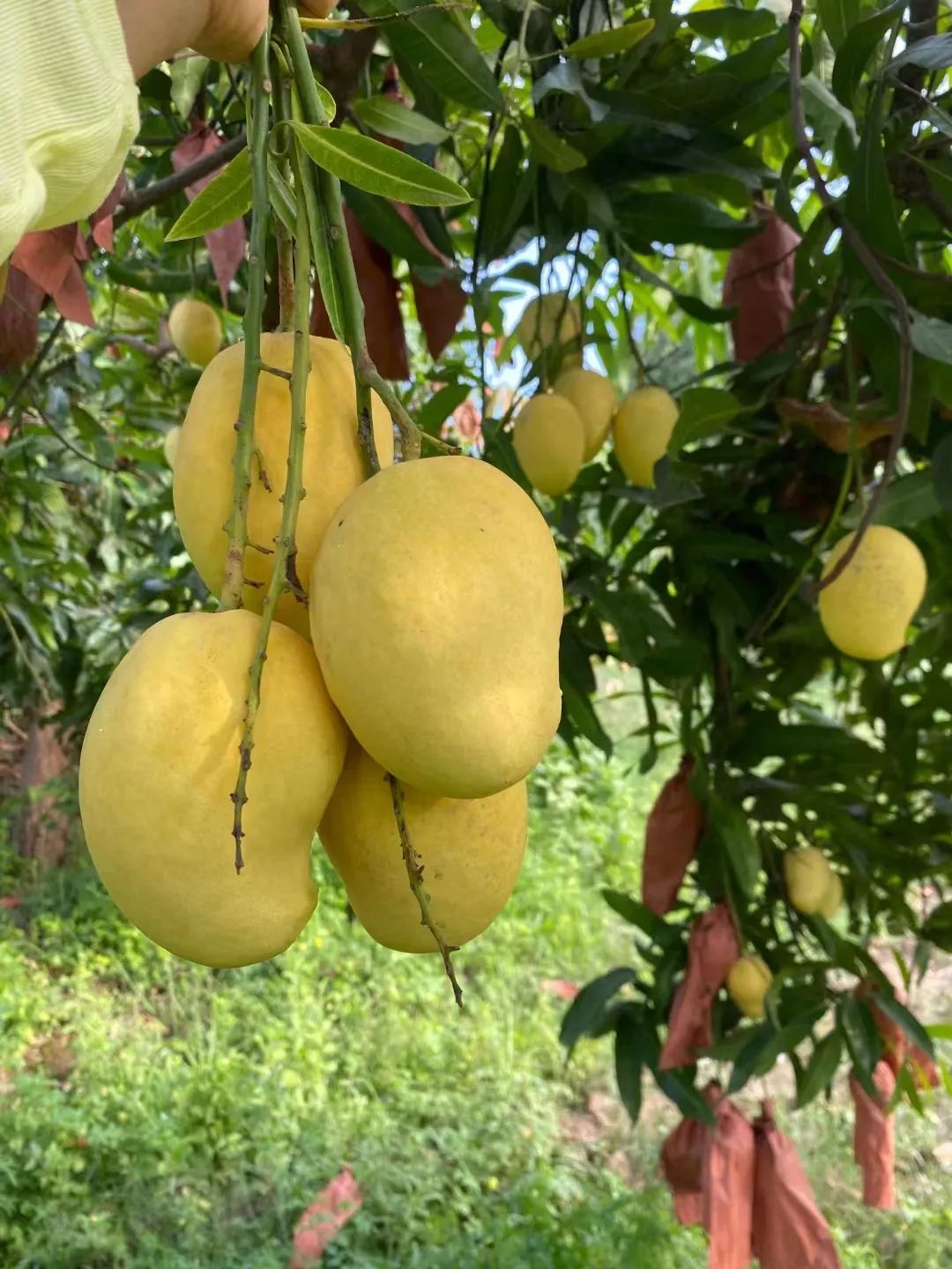 成熟后的圣德龙芒果,芒果果肉金黄香甜。一口咬下去,感觉从厚厚的果实里蹦出汁水及散发的香味瞬间弥漫在整个口腔。