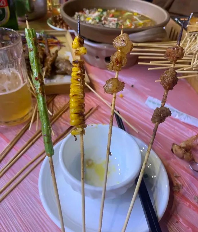 他明明可以直接烤签子,但还是送了我点肉沫子