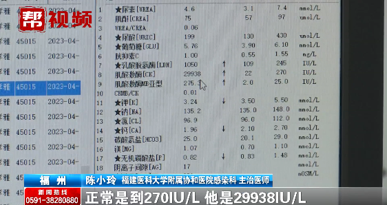 抽血结果则显示,张先生的肌酸激酶指标异常升高100多倍。