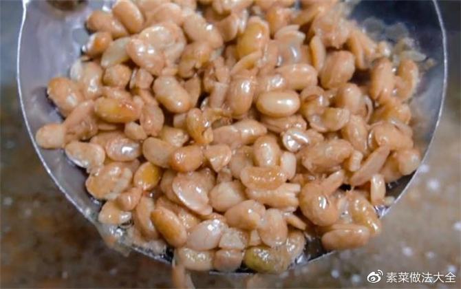 4.油热之后下黄豆,炸了大概有十分钟,豆子表面都起皱了,这样就炸好了。
