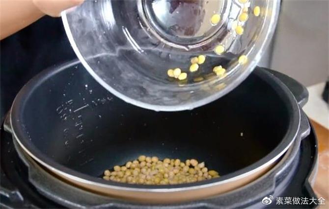 1.黄豆用清水洗一下,这个豆子不用提前泡了,咱们直接放在高压锅里面压熟,添上一部分的清水。