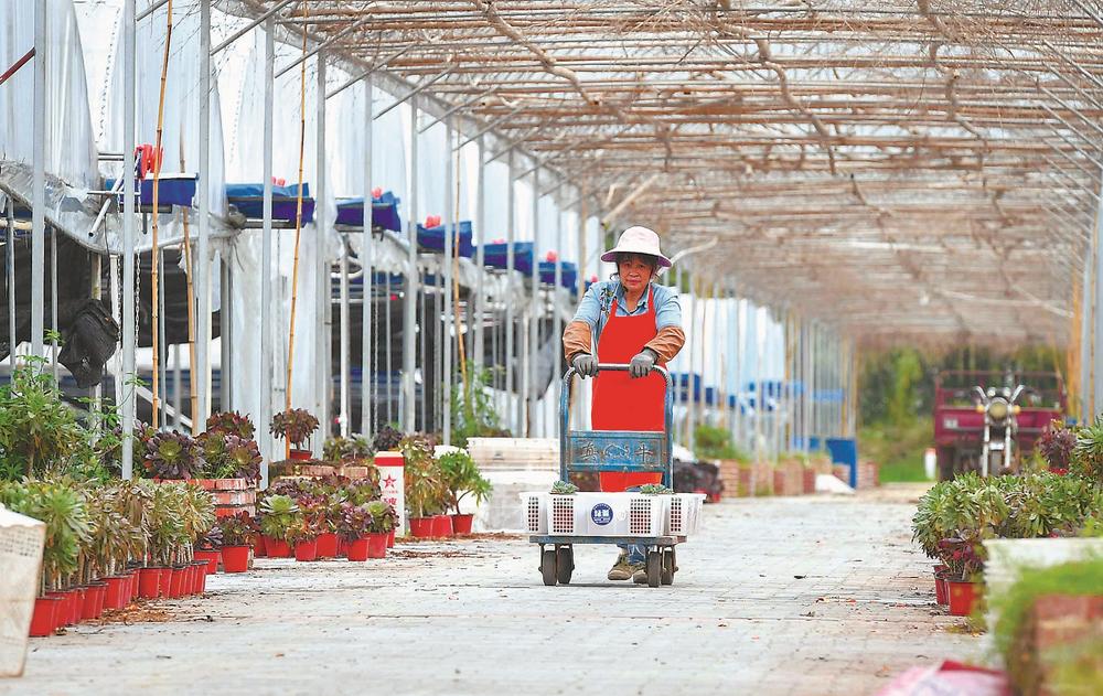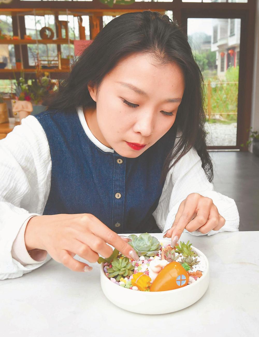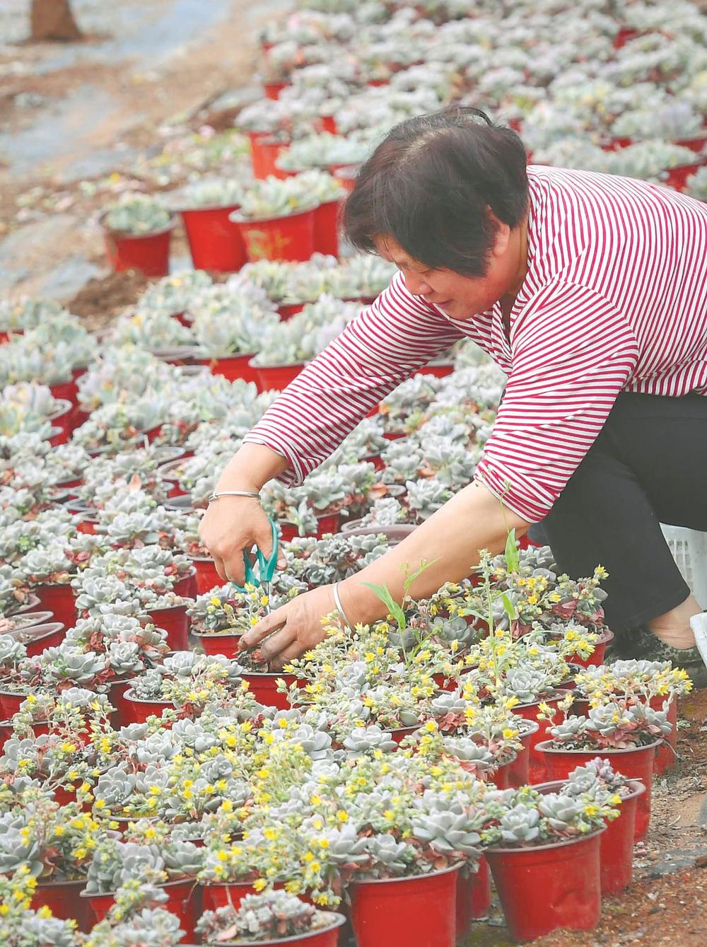 修剪多肉。多肉基地助力村民实现家门口就业。