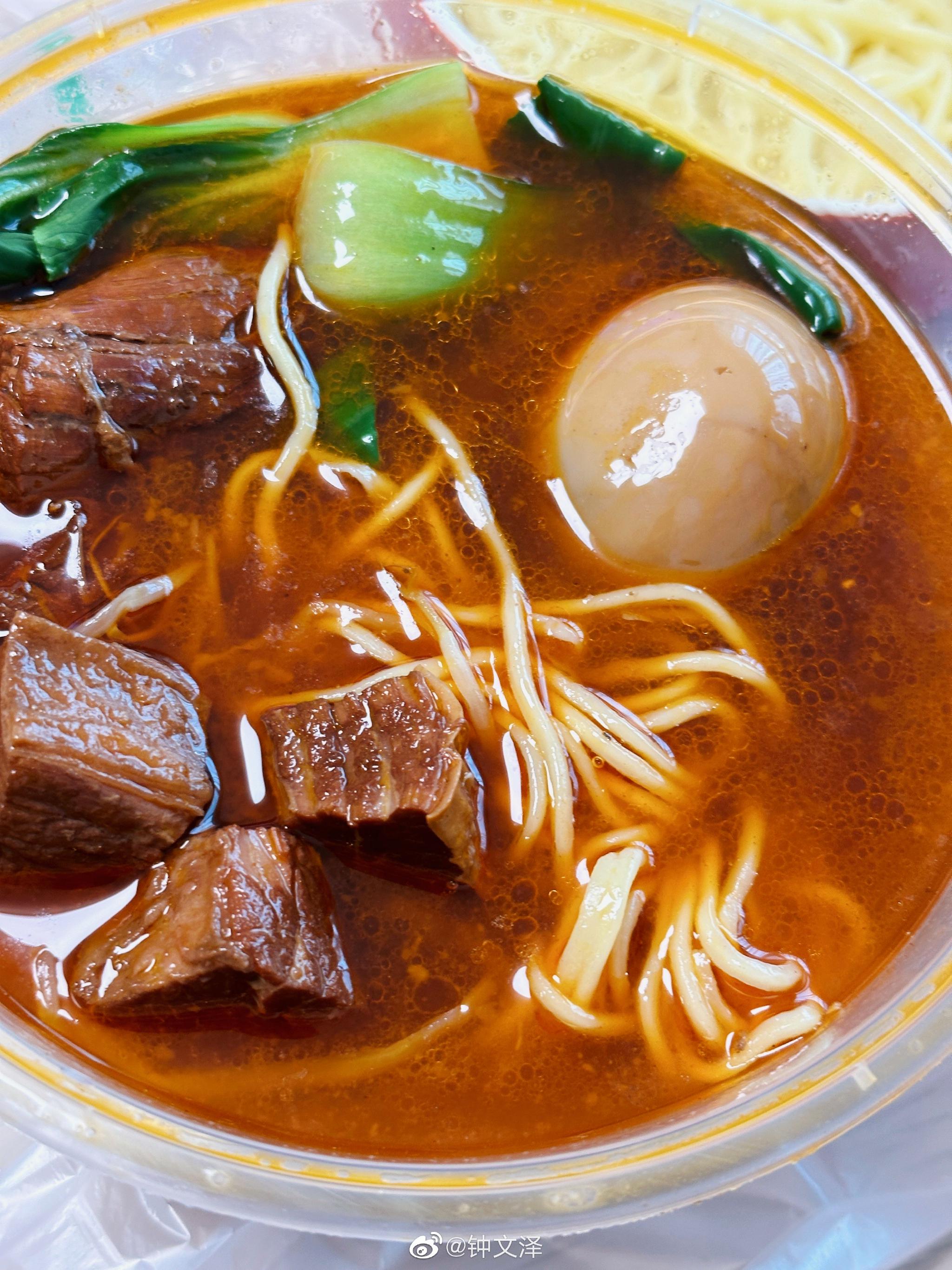 大块牛肉 + 卤蛋 + 小青菜 + 自己煮熟的面条。