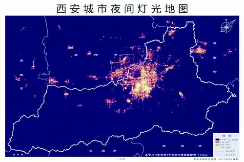 西安城市夜间灯光地图。西安市勘察测绘院供图