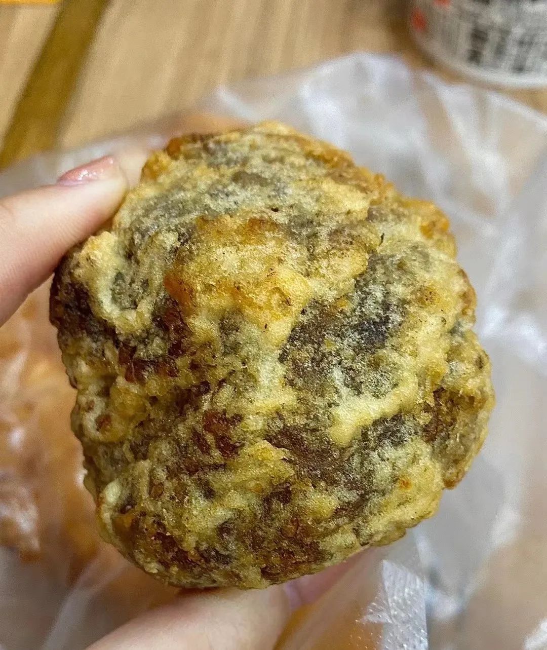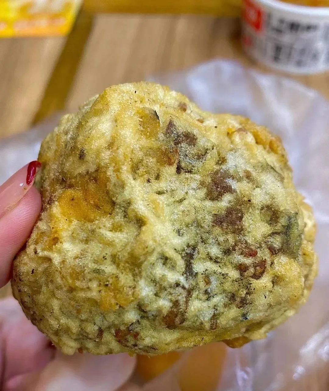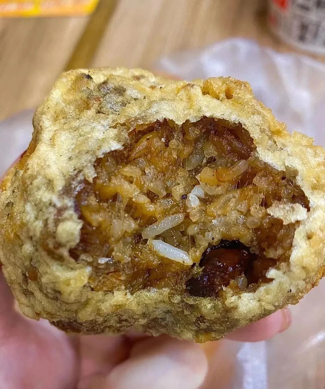 表皮又酥又脆,一口咬下去几乎都能感觉得到炸酥的面糊破裂在口中时的香酥,油把面糊炸的很透,炸过的面香混杂着糯米的香在嘴巴里蔓延开的时候真是满满的幸福感。
