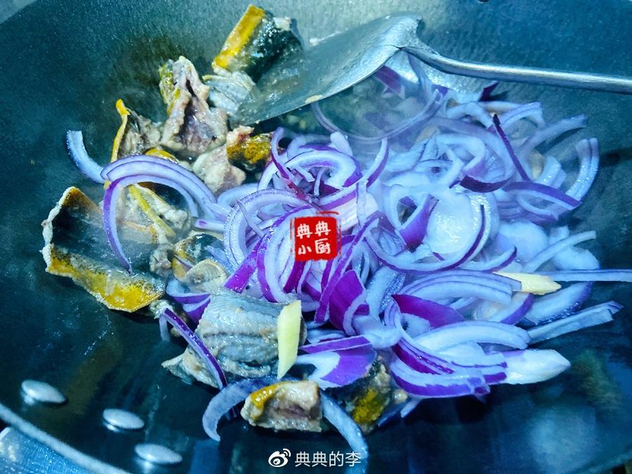 这个时候就可以加别的材料,生抽,洋葱,继续翻炒几下,加一点开水。