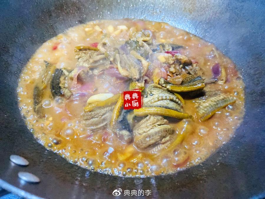 我是不敢杀的,我一直很怕这种软软的滑滑的爬行动物。我现在已经进步很多,虽然不敢吃但已经改烧了。别人杀好,砸平了之后,我切成段,清洗干净。