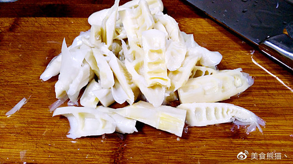 2、如果对冬笋形状没有特别要求的话,建议将冬笋切片,常见的做法也是切片,切好片后放在一个稍大的容器里备用