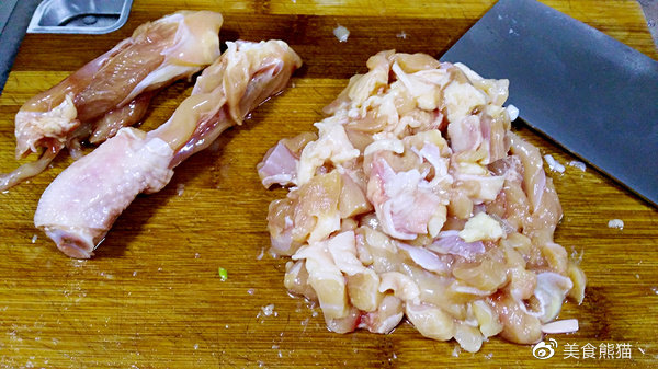 2、鸡腿洗净剔骨,肉切小块,葱姜切丝。