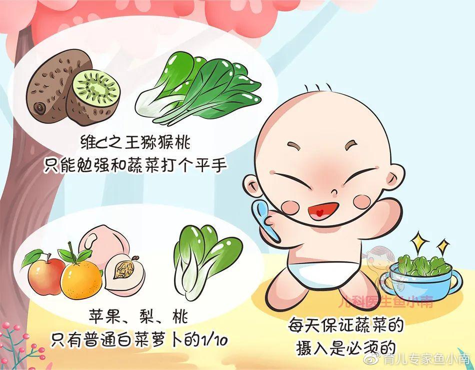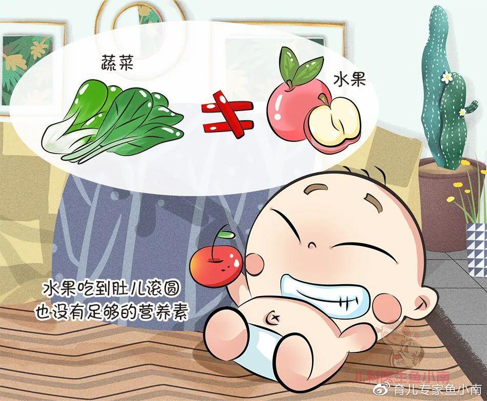 事实上,水果中的矿物质和维生素根本没法和蔬菜比,如果宝宝不吃或者很少吃蔬菜,水果吃到肚儿滚圆也没有足够的营养素。