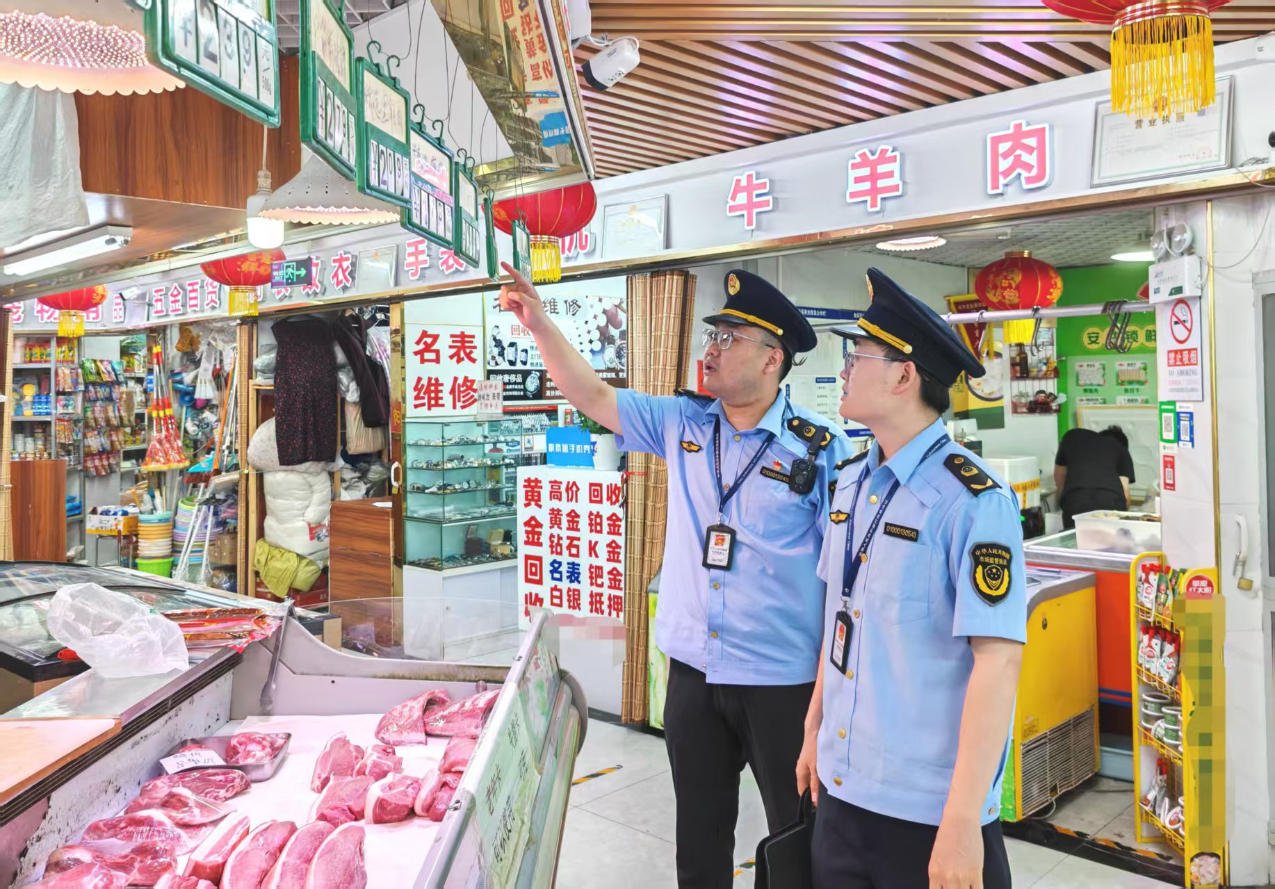 近日,北京市东城区市场监管局组织开展生鲜肉专项排查整治。执法人员重点检查农贸市场、生鲜肉销售商户的进货票据信息与现场检查肉品是否一致以及鲜肉价格等情况。