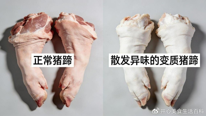 新鲜的猪蹄,凑近闻一闻,只有淡淡的正常肉腥味,没有其他奇怪的味道,这种猪蹄处理干净后,不管怎么烹饪,都能做出鲜香的口感。但要是凑近闻,能闻到明显的酸味、臭味,还有刺鼻的化学药水味,那就说明这猪蹄要么是存放太久、已经腐败,要么是用劣质添加剂处理过,用来掩盖不新鲜的真相。